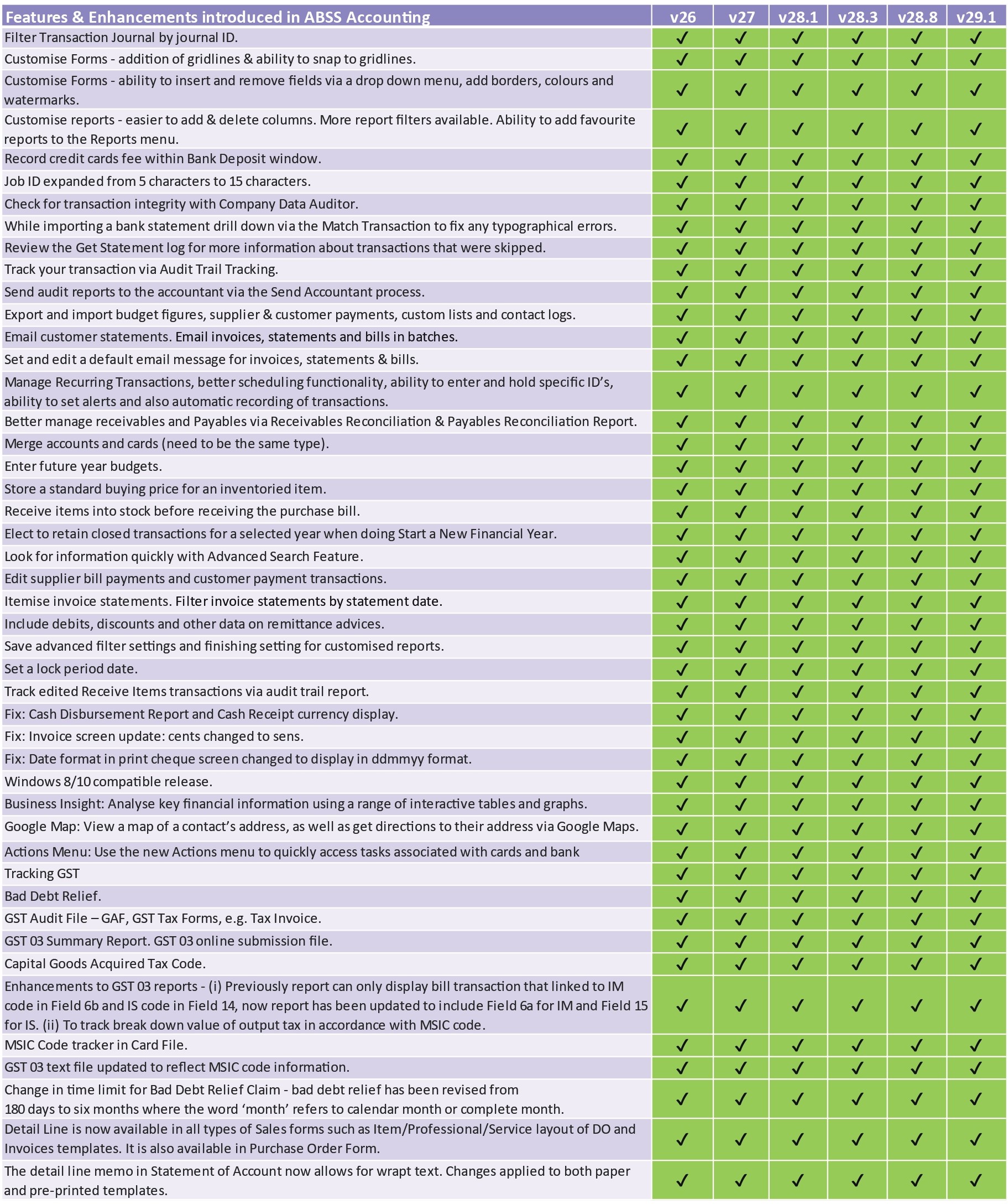 General Ledger, Cashbook, Accounts Receivable, Accounts Payable, Stock Control, Cheque Printing, Contact Management, Budget, Project & Job, 150+ Standard Reports.